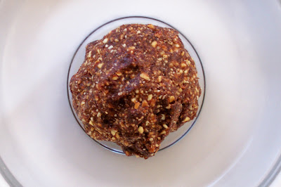 Cashew Cookie Dough: Reverse the proportions of fruit to nuts--Use 1/3 cup dates for the fruit and 1/2 cup raw cashews for the nuts.